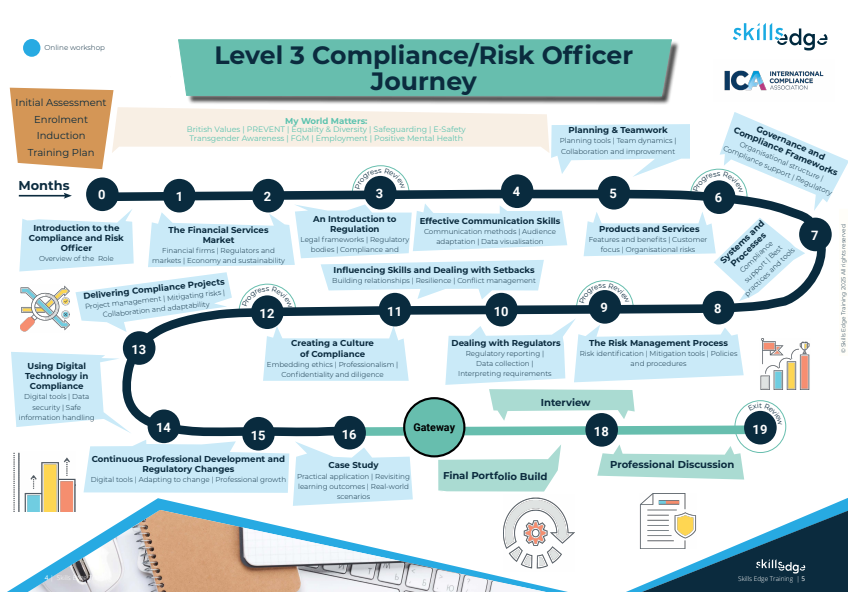 As part of this apprenticeship, apprentices will achieve the International Compliance Association (ICA) certificate.